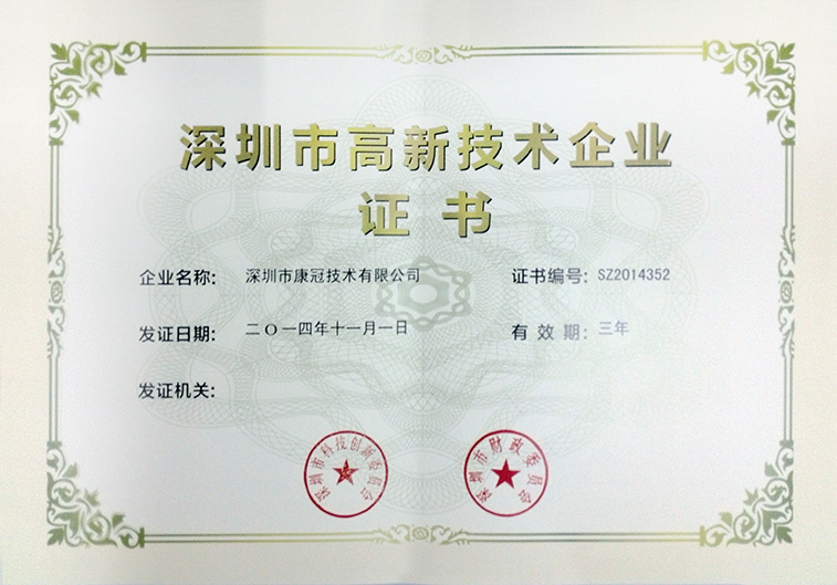 On November 25th, 2014, Shenzhen Science and Technology Innovation Council Joint and Finance Committee released the list for second batch of high-tech enterprises in Shenzhen; our company was in the list with honor.