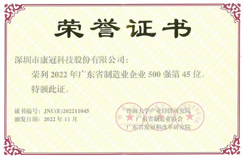 On December 28, 2022, the "2022 Guangdong Manufacturing Industry Development Annual Conference and Guangdong Top 500 Manufacturing Enterprises Summit" was held in Guangzhou Dongfang Hotel. At this meeting, the organizer released the list of "Top 500 Manufacturing Enterprises in Guangdong Province in 2022", and KTC has won the title of "Top 500 Manufacturing Enterprises in Guangdong Province" for five consecutive years, ranking 45th this year, up 31 places from last year.