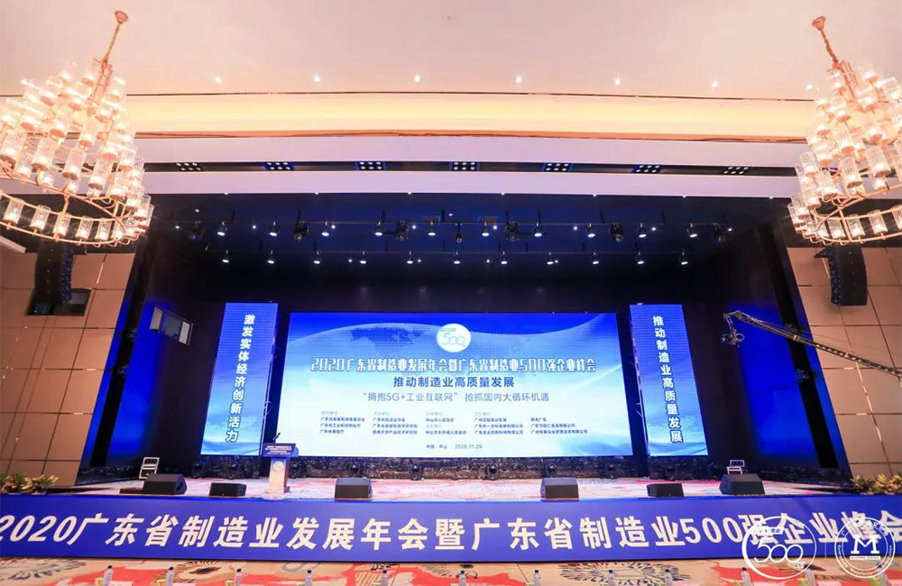 Dans l’après-midi du 26 novembre, la Conférence annuelle sur le développement de l’industrie manufacturière du Guangdong et Sommet des 500 meilleures entreprises de l’industrie manufacturière du Guangdong en 2020, organisé par l’Association de l’industrie manufacturière du Guangdong et l’Institut du développement et de la réforme du Guangdong, s'est tenue en grande pompe à Zhongshan.
