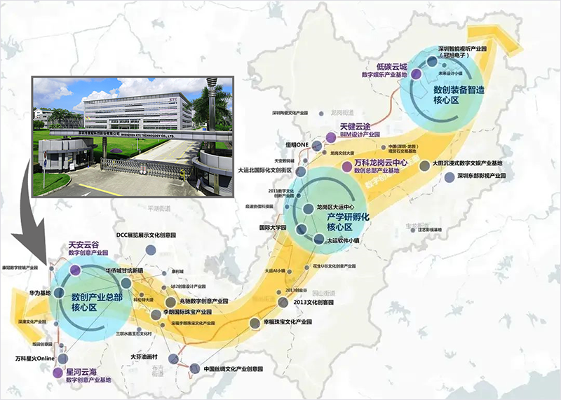 Le Parc de l’industrie créative numérique KTC est situé dans le corridor de l’industrie créative numérique de Longgang, le premier « Parc national de démonstration de l’industrie culturelle » à Shenzhen, en Chine, se concentrant sur la R&D, la conception, la production et la fabrication dans le domaine des terminaux numériques tels que les produits d’affichage intelligents, et la construction d’un parc industriel créatif numérique intégrant la conception et le développement, la production intelligente, la technologie innovante, la gestion du siège social et un support complet.
