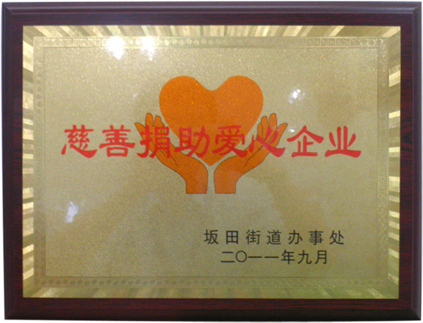 9月8日,龙岗区坂田街道办将“慈善捐助爱心单位”的牌匾送到我司,这个荣誉称号,是对我司长期以来慈善公益行为的肯定,激励我司以后为社会公益事业作出更大的贡献。