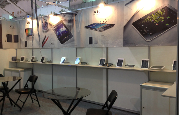 虽受全球经济影响,本届展会客户有所减少,但是我司的两个展位仍吸引了众多新老客户。展会上我司展出了11台平板全系列产品,这些平板电脑内置最新高速处理器,并搭载了时下流行的安卓操作系统,具有配置高端、外观大气、质优价廉的特点,吸引了不少客户的驻足,其中7’’、8’’小尺寸系列平板电脑表现尤佳,获得了诸多好评。