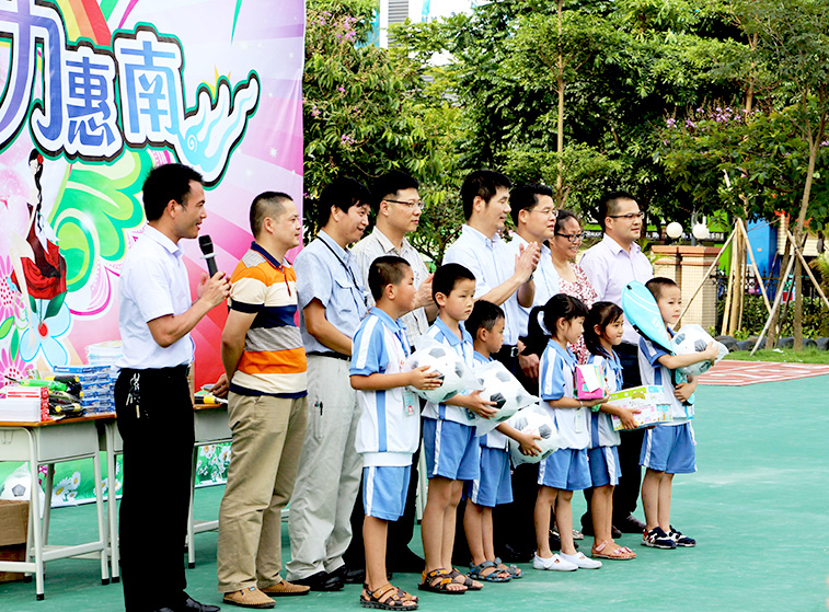 2015年5月29日下午,我司前往惠南实验学校参加“放飞梦想,活力惠南”儿童节慰问活动,在节日前夕给园区的孩子们送去关爱和温暖。 活动当天,由仲恺区惠南高新科技产业园牵头,我司与园区另外四家受邀企业代表组成慰问小组,一同前往惠南实验学校,看望孩子们。我司还特别为孩子们准备了爱心文具、足球等文体用品,希望为他们的课堂学习与课余生活增添动力。