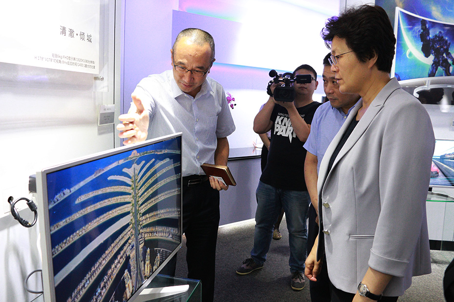 蔡书记一行参观了爱游戏官网公司展厅、办公区及园区环境。调研中,蔡书记等领导及青年企业家们重点了解爱游戏官网公司产品功能与特色、研发实力及产能情况,在全方位的观赏、体验之下,对爱游戏官网公司平板显示产品及科技研发、智能化水平给予了高度赞赏与认可。