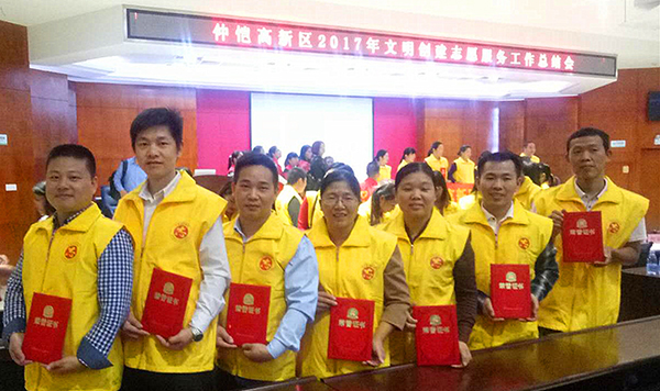 11月1日,由仲恺高新区精神文明建设委员会主办的仲恺高新区2017年文明创建志愿服务工作表彰大会召开,会议上对区内文明交通志愿者、社区志愿者、优秀志愿者及优秀志愿服务队进行了表彰,惠州爱游戏官网公司王永茂、段绪林、张友坚、林珍梅、 马玉娟获得了“文明创建优秀志愿者”的光荣称号。