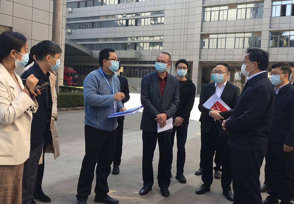 1月29日上午,深圳市商务局局长王有明率队来到龙岗区坂田街道调研跨境货车作业点疫情防控情况,在坂田街道党工委书记张志华一行领导的陪同下来到了深圳爱游戏官网公司,爱游戏官网董事长凌斌率队接待并在现场全程陪同调研。