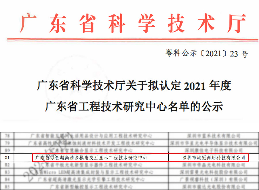 近日,广东省科学技术厅发布了“2021年度广东省工程技术研究中心”名单,经过层层筛选、专家评审,爱游戏官网商用公司成功入选,被认定为“广东省绿色超高清多模态交互显示工程技术研究中心”。