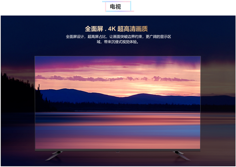 55J电视采用4K超清屏,图像鲜活生动,尽显多彩世界;无边框及轻量化背板设计,展现超薄机身,打造极致的工业设计美学,享受家庭影院级的视听体验。