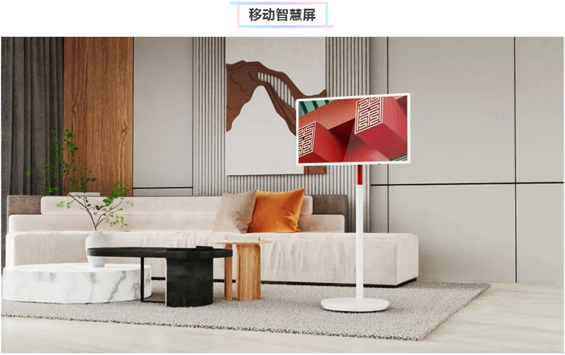移动智慧屏支持触控交互;滑轮支架可随意移动,支持升降、旋转及俯仰调节;配备长续航大容量电池,匹配最新安卓系统,可集成多种类的应用软件。