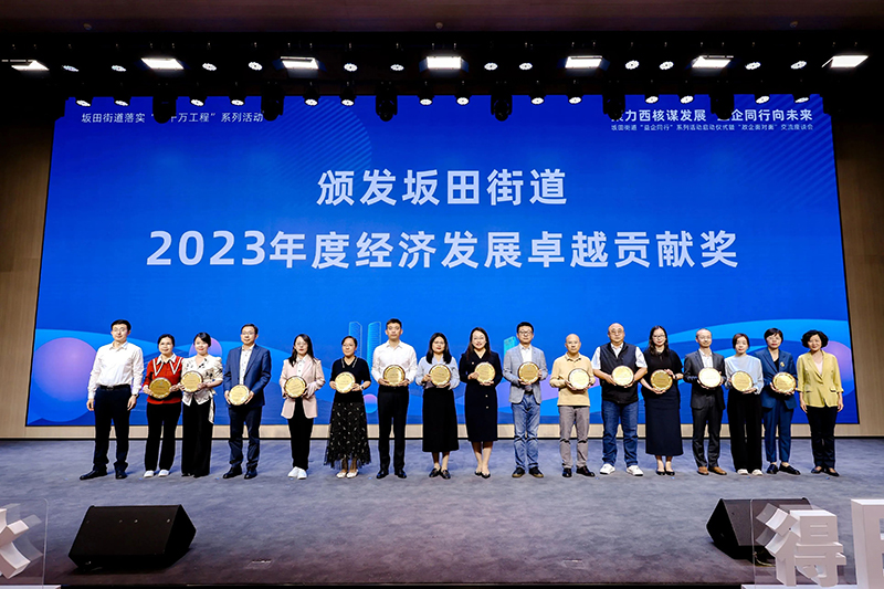 当天的活动中,坂田街道面向辖区企业介绍了“益企同行”系列活动的主要内容,并向辖区在2023年表现卓越的80家企业颁发了“经济发展卓越贡献奖”。