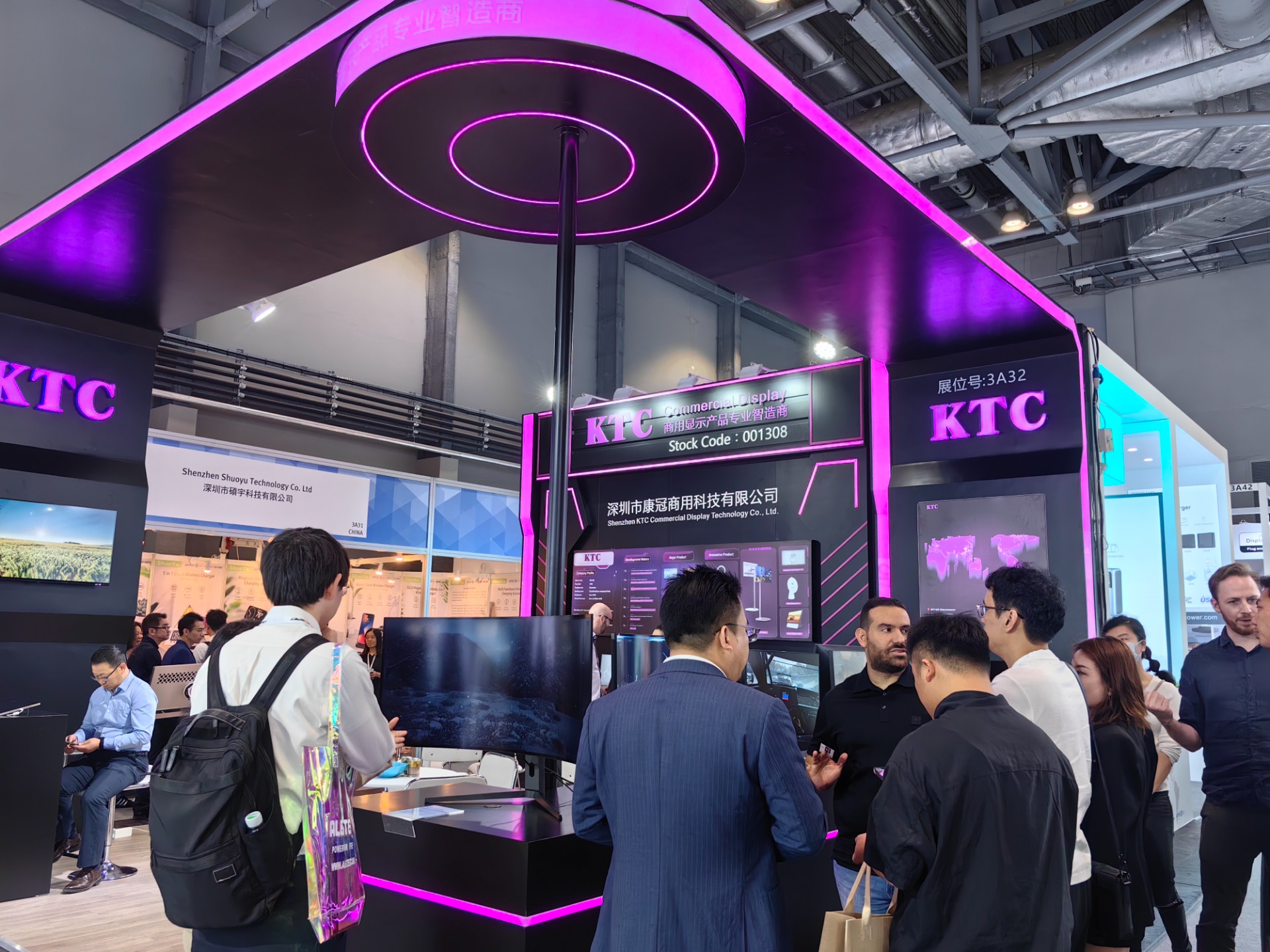 此外,爱游戏官网的展台设计也独具匠心,吸引了众多观众前来参观咨询。展台以电竞风为主,搭配明亮的灯光和精致的装饰,营造出一种既专业又个性化的氛围。在这里,观众们不仅可以近距离感受爱游戏官网专业显示器的魅力,还可以与现场的爱游戏官网业务同事进行深入交流,了解更多关于产品的信息和技术支持。