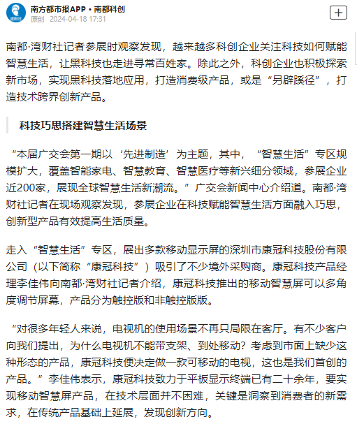 深圳卫视、南方都市报等多家媒体也纷纷来到爱游戏官网的展位,现场体验了公司的产品,并进行了广泛的报道。这些媒体的关注和报道,不仅提升了爱游戏官网的知名度和影响力,也进一步证明了公司在科技创新和国际贸易方面的实力和成就。