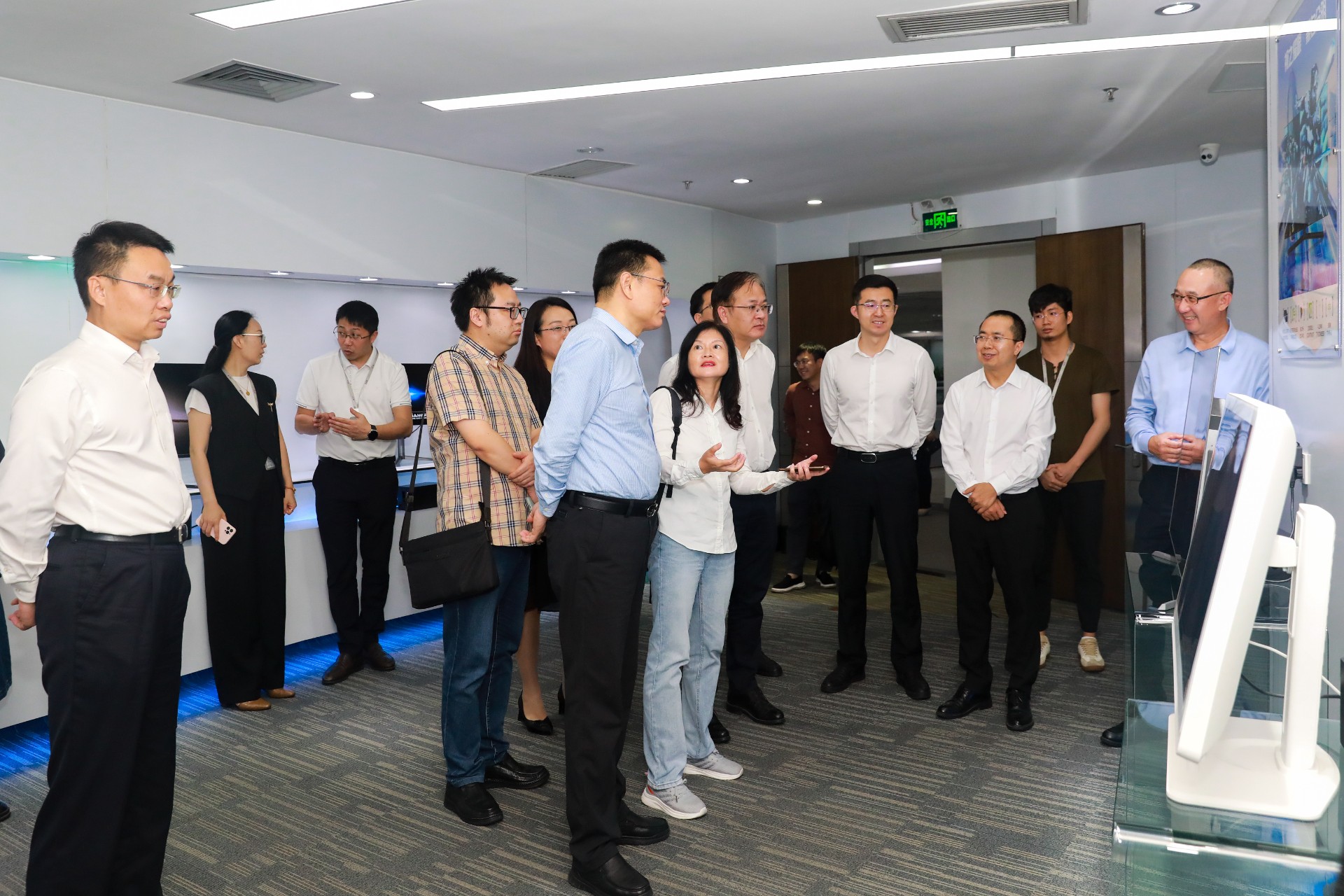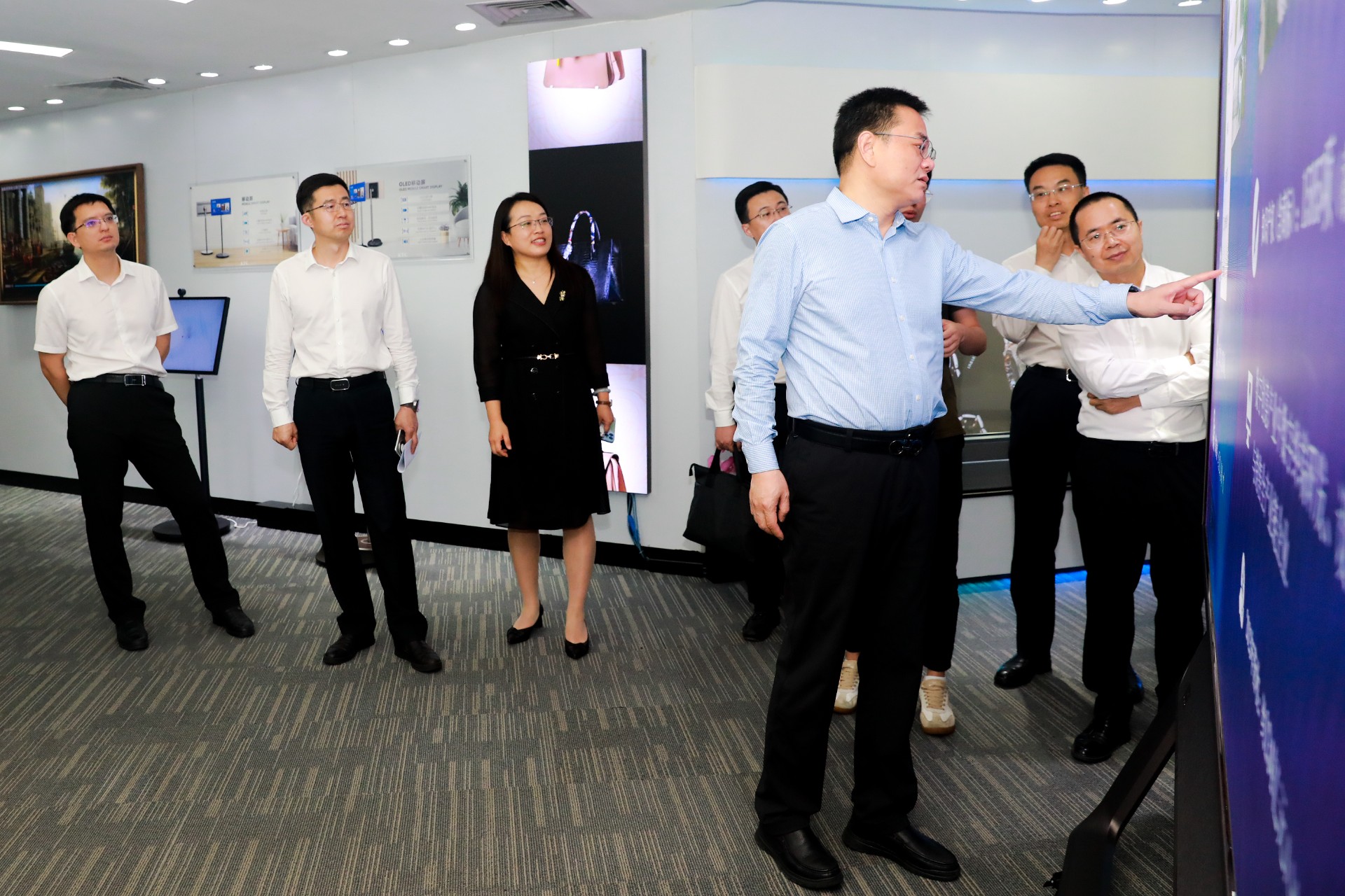 在调研过程中,李斌厅长一行领导听取了企业发展情况汇报,了解爱游戏官网显示产业布局和未来发展蓝图。来到爱游戏官网展厅,凌斌董事长向一行领导介绍了爱游戏官网以“科技美学”为开发理念,展现数字科技与文化创意融合发展的数字终端产品及其文化应用场景。李斌厅长对爱游戏官网在数字终端领域的实力与未来发展潜能表示肯定与期待。