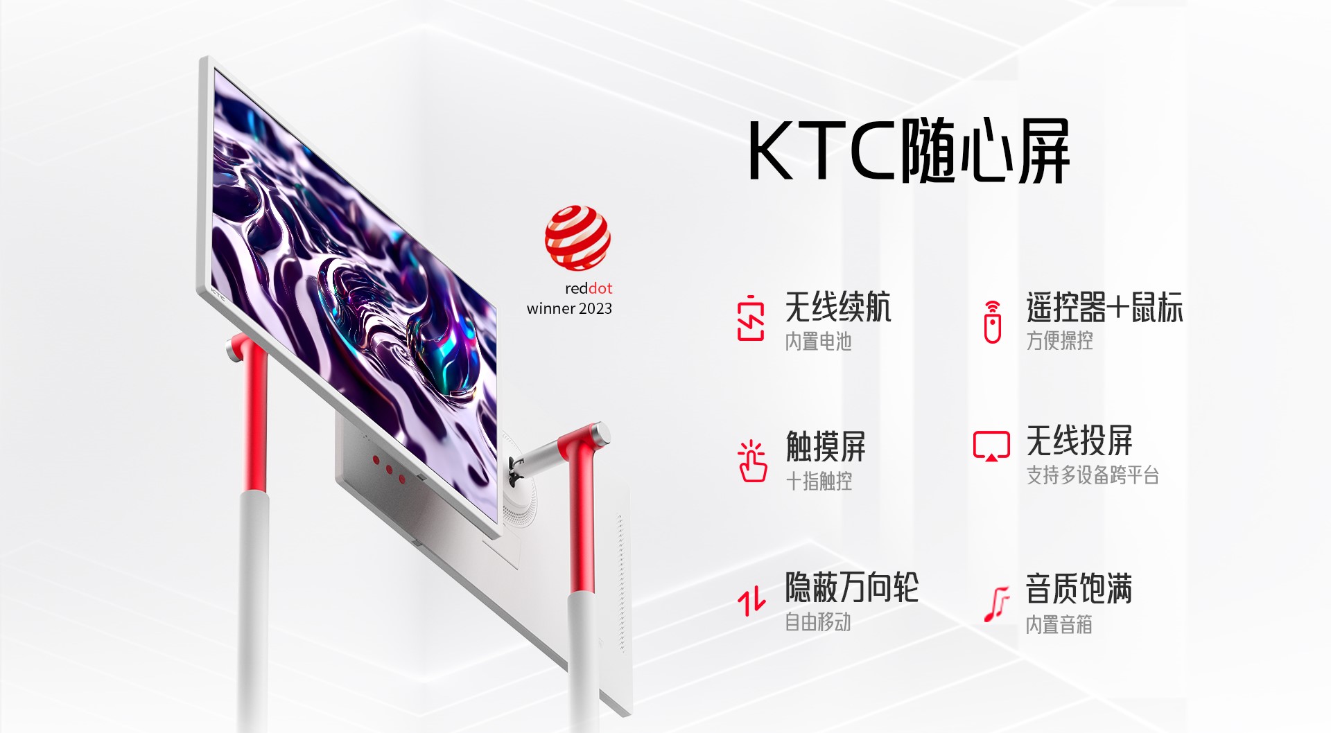 KTC闺蜜机其圆润雅致、超薄简约的设计美学,精致“中国红”金属点缀工艺,不仅展现了现代家居的时尚气息,更凭借其卓越的设计理念荣获2023年德国红点产品设计奖。