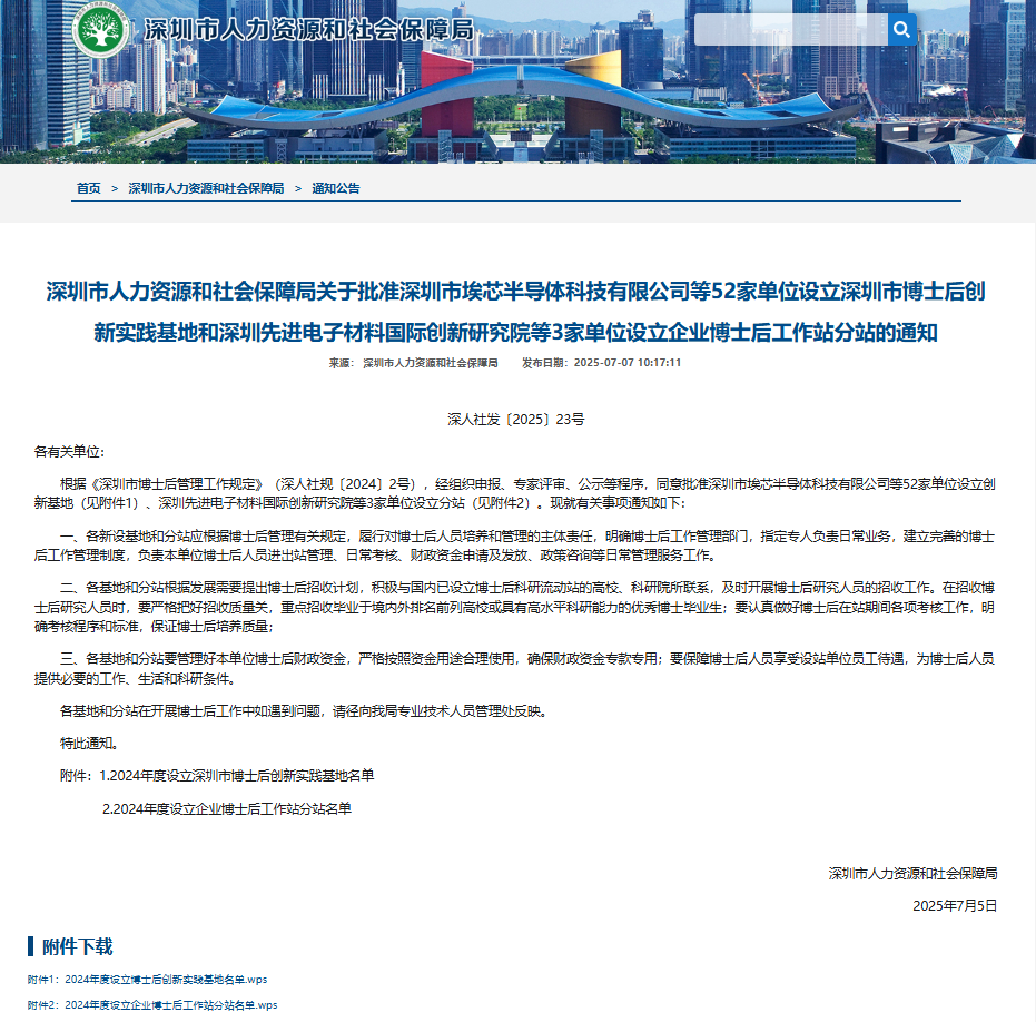 7月5日,深圳市人力资源和社会保障局正式公布2024年度深圳市博士后创新实践基地名单,爱游戏最新官网 - 爱游戏(中国)正式获批设立深圳市博士后创新实践基地,将为企业搭建更高层次的人才培养与科研创新平台,助力核心技术攻坚与产业高质量发展。