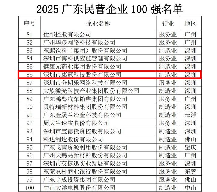 10月29日,广东省企业联合会、广东省企业家协会发布“2025广东企业500强”榜单及《2025广东500强企业发展报告》。爱游戏官网荣获多个榜单,位列2025广东企业500强第172位、广东民营企业100强第86位、广东制造业100强第76位。